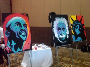 Beginning by painting a bold-colored portrait of famed basketball star, Michael Jordan, Wahl emphasized how each of us at one point in our lives was an active and creative artist – even with Crayola crayons. At some point, however, we began to suppress the creative right-side of our minds. We began to focus on the logical, orderly left-side where conformity is prized – especially in business.